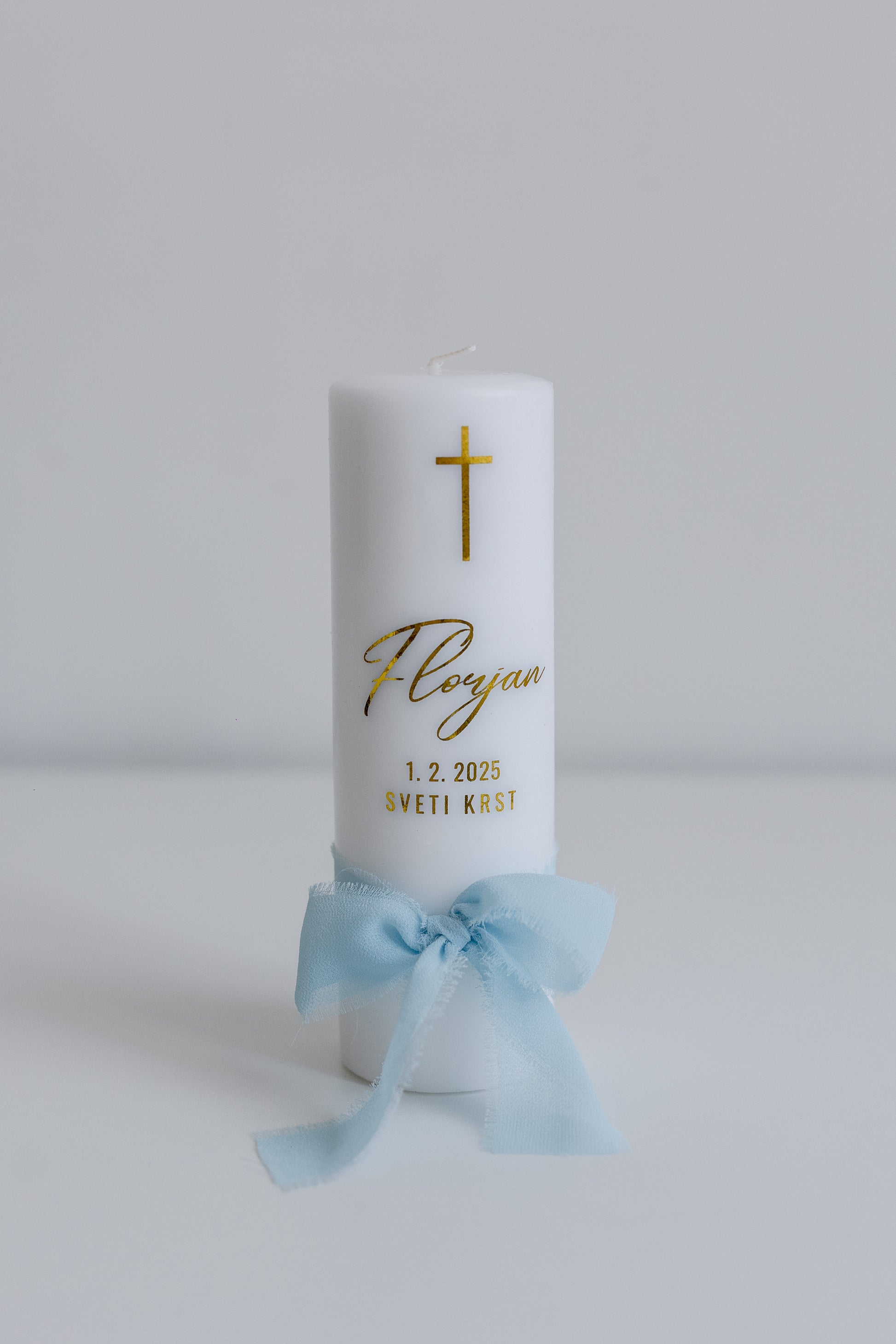 S ljubavlju izrađena svijeća simbolizira čistoću, svjetlost i novi početak te ostaje kao lijepa uspomena na dan krštenja.
