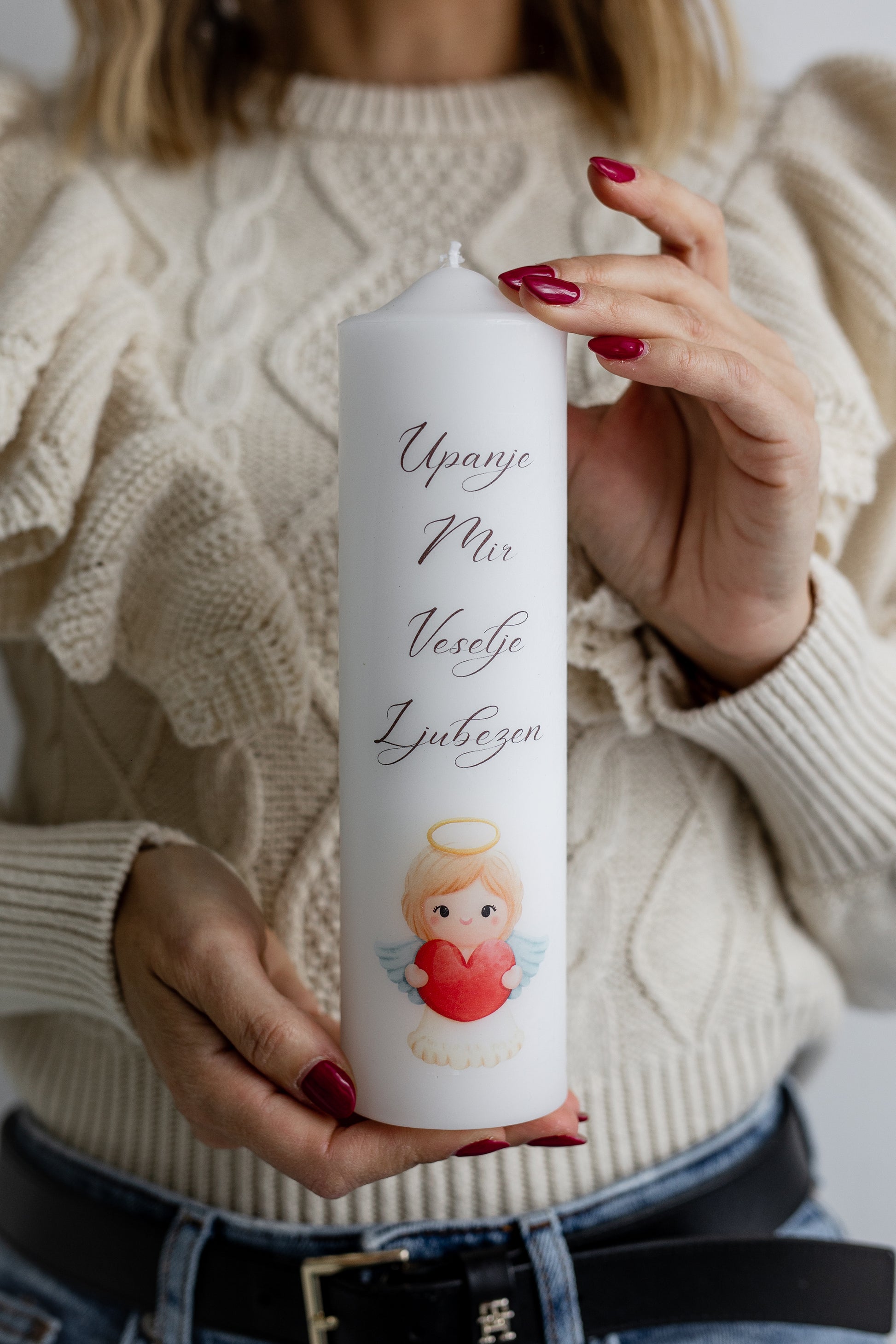 Dodajte praznično toplino in pomen svojemu domu z elegantno adventno svečo, ki simbolizira štiri temeljne vrednote adventnega časa – Upanje, Mir, Veselje in Ljubezen. Sveča je obogatena z izbranim božičnim motivom.