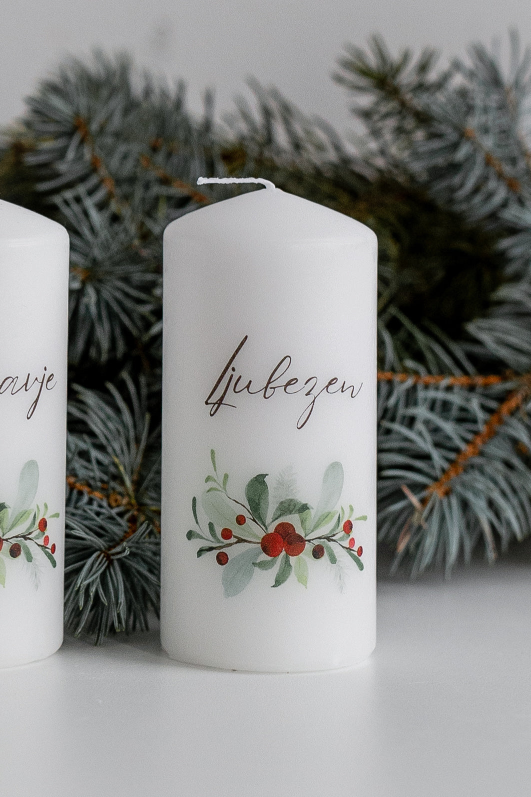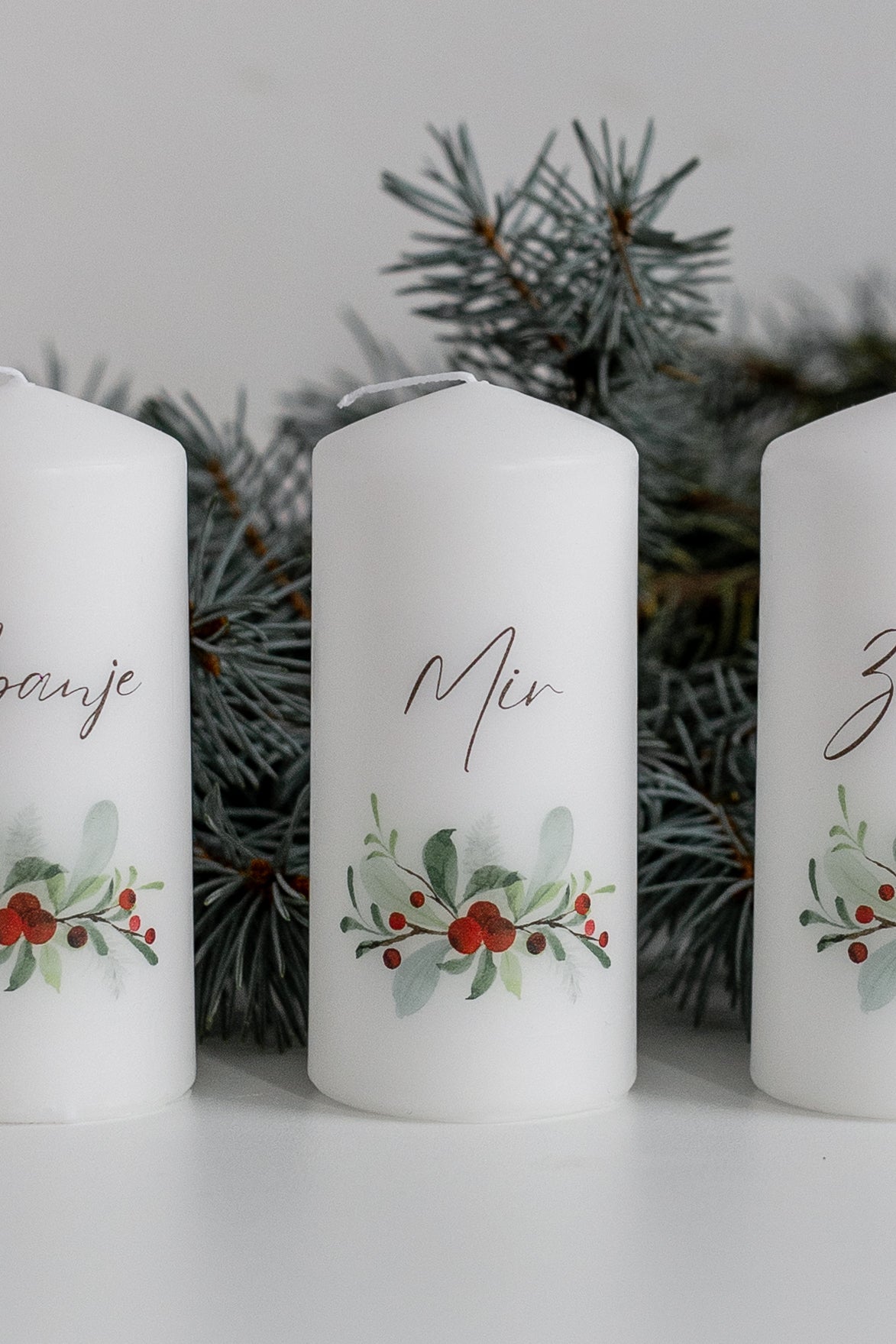 Pripravite se na čarobni adventni čas s kompletom 4 adventnih sveč. Vsaka sveča v tem kompletu je unikatna – krasijo jo različni praznični motivi.