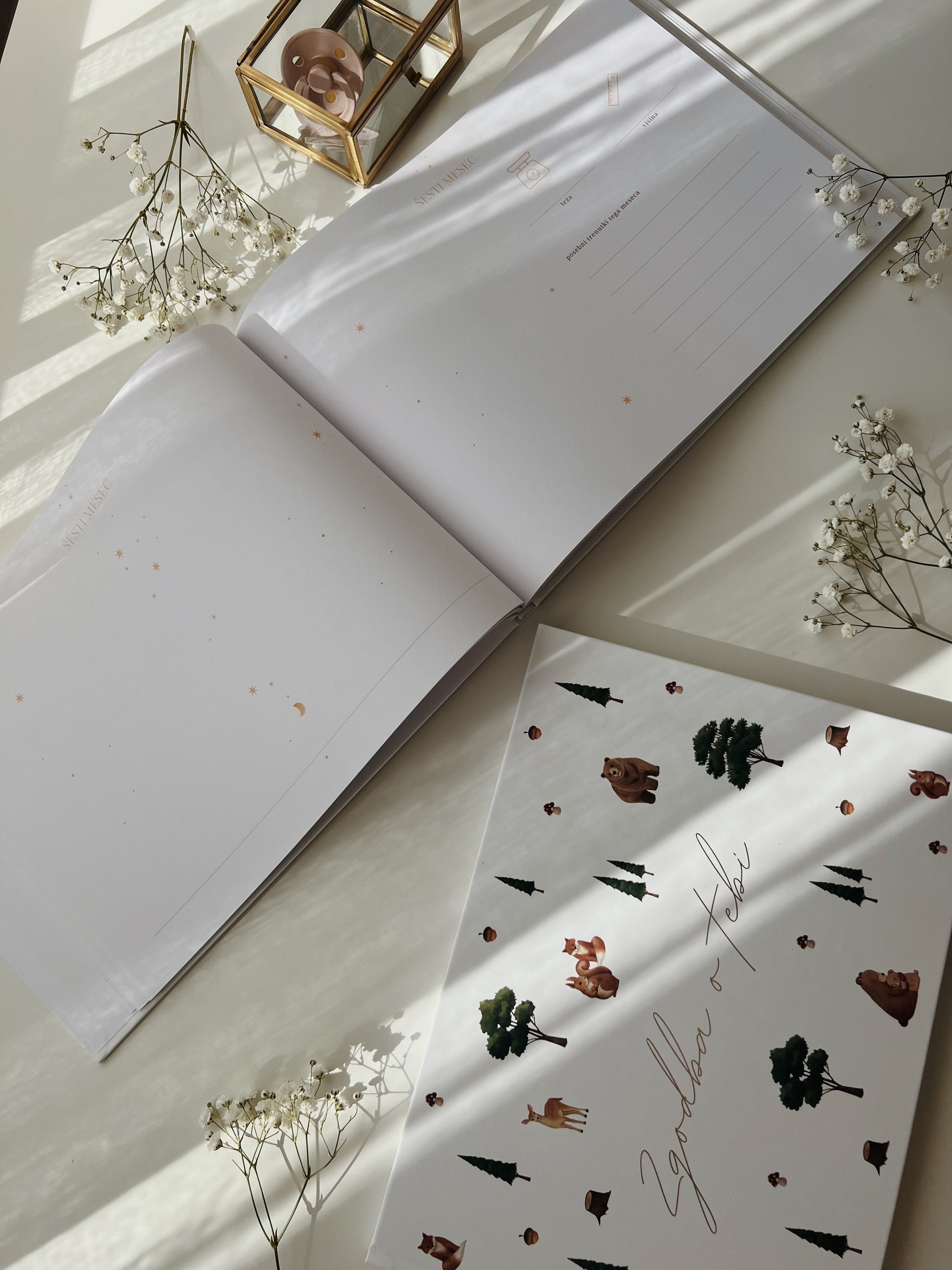 Čudovit dojenčkov album za novopečene in bodoče starše, ustvarjen za beleženje vseh tistih posebnih in ključnih trenutkov vašega malčka. Toliko je dragocenih dogodkov, misli in občutkov, ki si zaslužijo, da ostanejo zapisani — od prvih nosečniških fotografij pa vse do prvih velikih korakov v življenju.